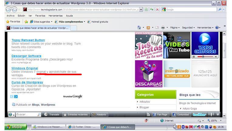 Pero lo mejor del caso es que el cliente final de la campaña de adwords es su amado Juasss! Microsoft, el gigante poderoso. ! Microsoft, que gasta millones en publicidad! Seguro que no se han enterado, porque si se dan cuenta, el redactor de la campaña tendría que exiliarse a un planeta donde la ira de Microsoft no le alcanzara (y dudo que exista en ninguna galaxia cercana).